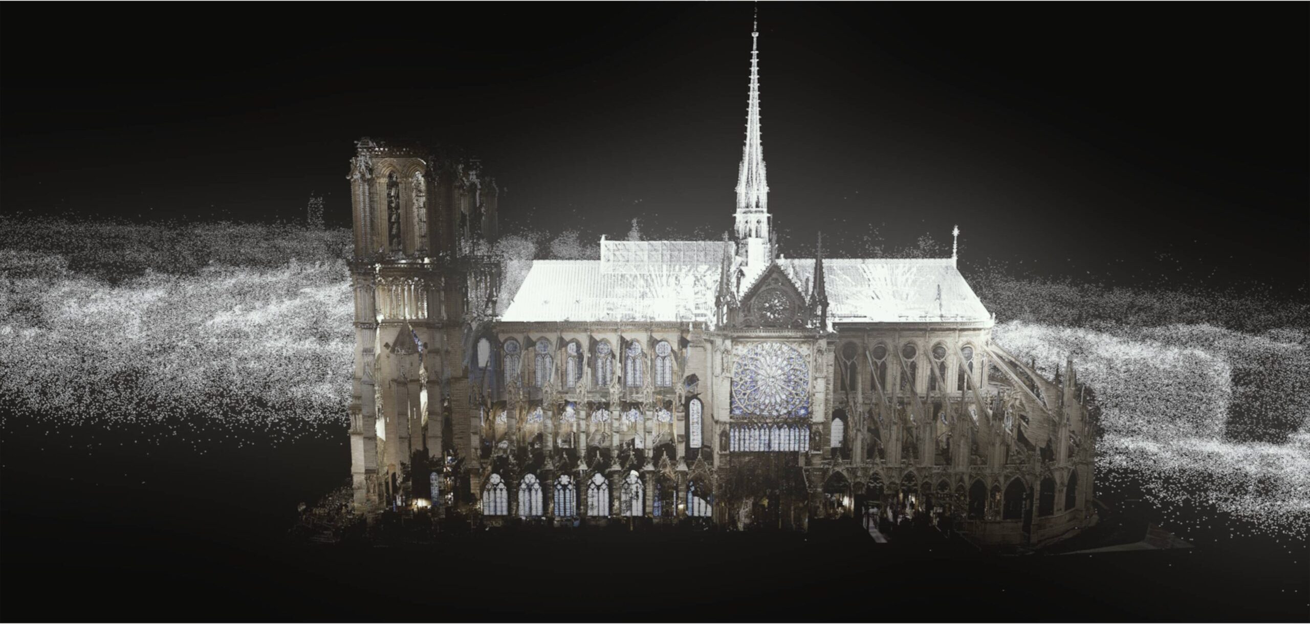 La presentación utiliza datos de nubes de puntos recopilados por el difunto y reconocido historiador de arte belga y profesor del Vassar College, Andrew Tallon, quien creó escaneos láser en 3D de la catedral en 2010 que resultaron fundamentales para guiar la reconstrucción de la catedral, así como escaneos adicionales y material en 3D de Histovery.
