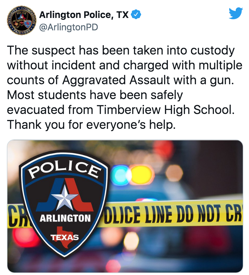 Arlington, Texas. – Una pelea entre estudiantes dejó como saldo cuatro heridos, tres estudiantes y un adulto. Se desconoce la gravedad de los heridos. El incidente ocurrió en la preparatoria Timberview High School en Arlington, suburbio en el norte de Texas.