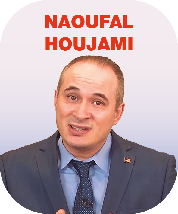 Naoufal Houjami es un político estadounidense, más de 25 años de experiencia, empresario, autor, estratega de seguridad nacional de EE. UU. Es padre de 4 hijos, todos nacidos y criados en Houston, Texas, donde vive con su familia.