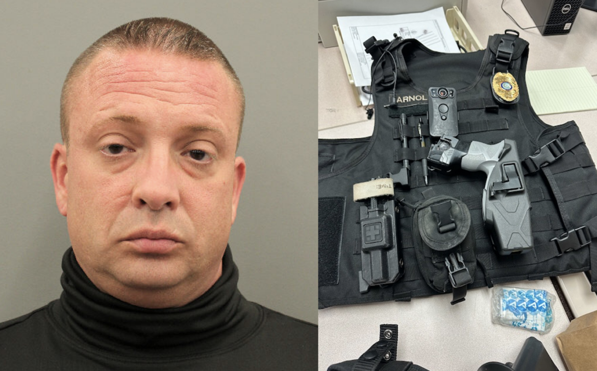 En consecuencia, Arnold fue acusado de hacerse pasar por un oficial de policía y un delincuente en posesión de un chaleco antibalas.