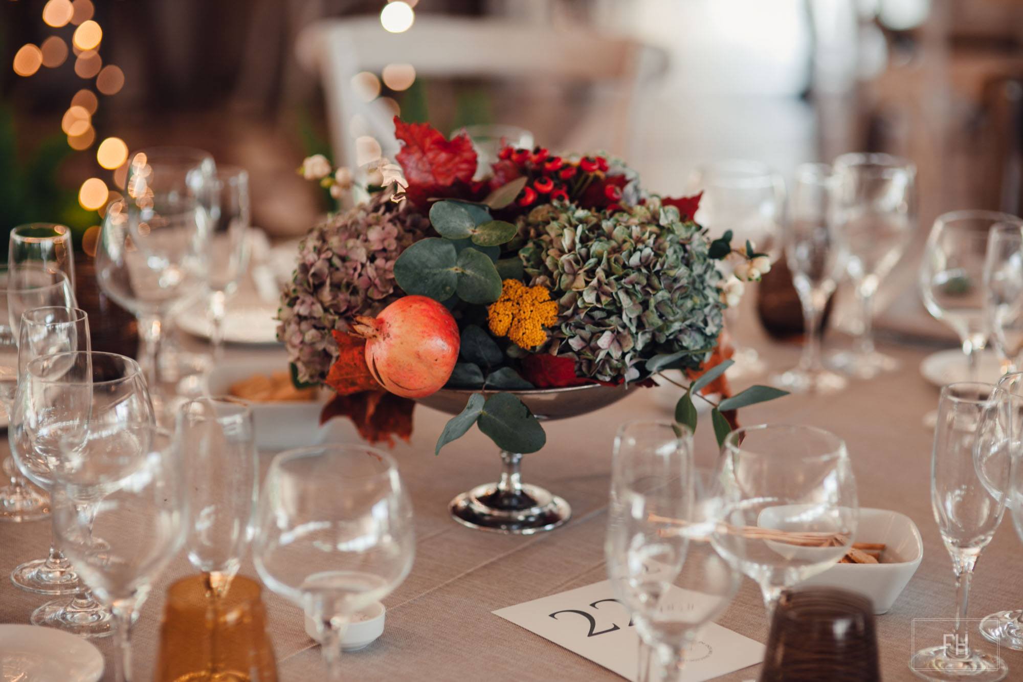 Muchas veces lo importante es utilizar material sencillo que podemos tener en casa, pero saber darle un uso divertido y diferente. Unas granadas, unos ramilletes verdes y unas velas en portavelas con encanto pueden ser ingredientes maravillosos para crear un centro de mesa y también podemos hacerlo con otros frutos o frutas de la temporada. También hojas y flores naturales pueden darte un bello centro de mesa.